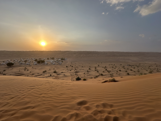 After a few days of sitting on the beach, we drove 2.5 hours South to the desert. This leg of the journey was the main reason we rented a car. The resort was an upscale, glamping operation. 10 kilometers off-road by a small village named Al Wasil (الواصل). The resort said we would need 4-wheel drive and they weren't lying. As I white-knuckled through the sandy landscape, I was reminded of driving on unplowed roads in Illinois after a heavy snow.